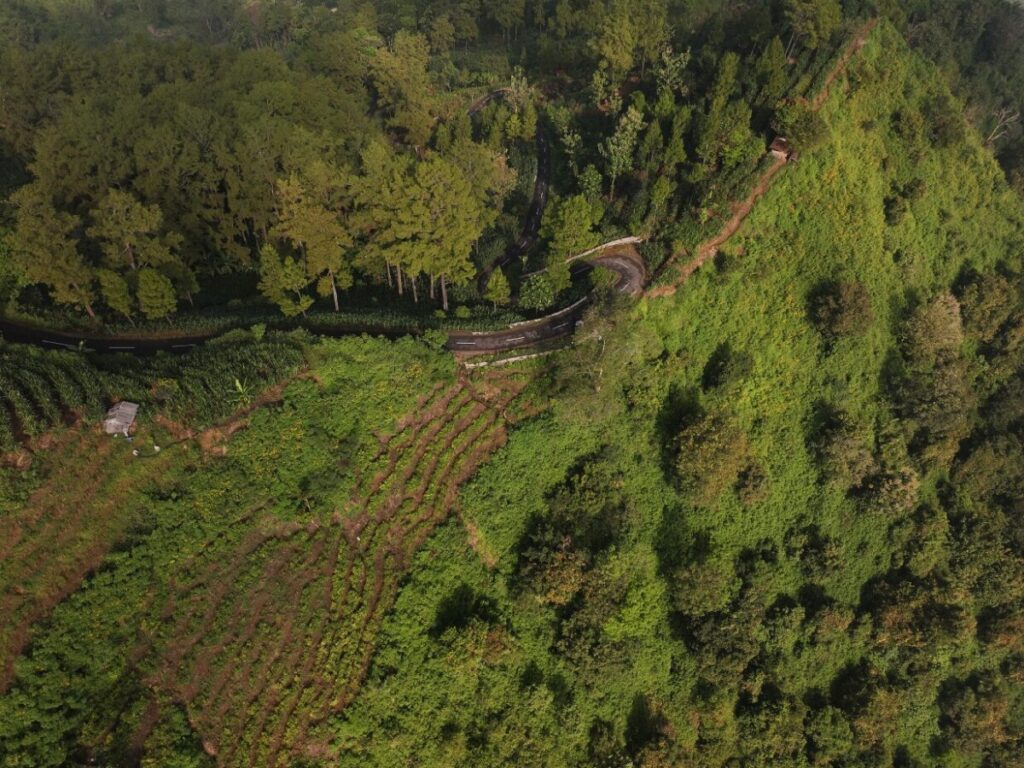 Punggungan relatif baratlaut-tenggar, membentuk pagar alam di Kadut, Nunuk Baru, Majalengka Jalan menapaki tubir sesar Baribis di Nunuk Baru, Majalengka