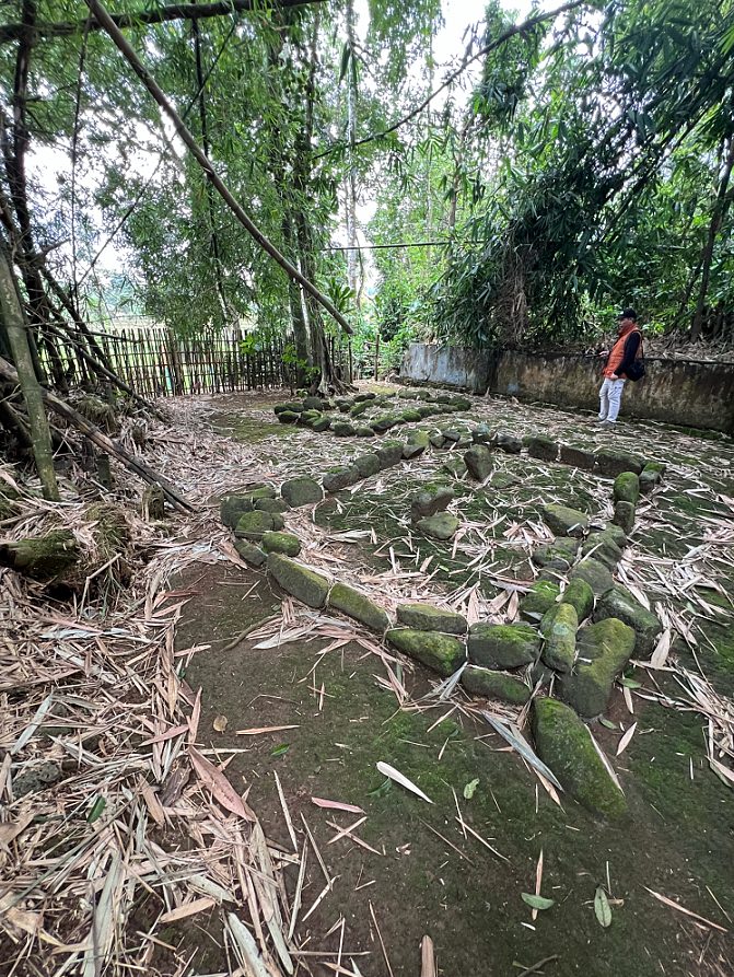 Kedua orang Eropa tersebut, menelusuri informasi lokal tentang keberadaan tinggal arkeologi di sekitar timur Desa Mayang.Masyarakat menyebutnya Dayeuhluhur yang bermakna pemukiman di daerah tinggi. Merujuk pada hunian masyarakat agraris dalam kelompok kecil, berada di sekitar hulu sungai Ci Tali. Secara administratif masuk ke dalam wilayah Desa cimanggu, Cisalak, Kabupaten Subang. Jalannya bisa dilalui roda empat (mobil), tetapi di beberapa ruas jalan rusak. Selain tonase truk pengangkut kayu, diakibatkan juga oleh sistem drainase yang buruk, sehingga air melimpah ke jalan. Jarak dari simpang Jalan Raya