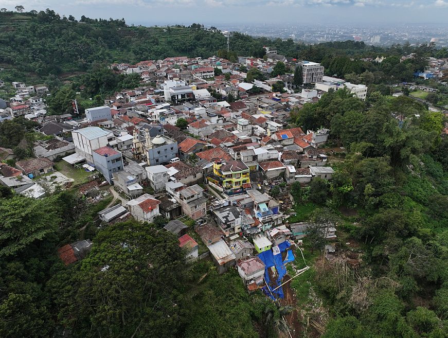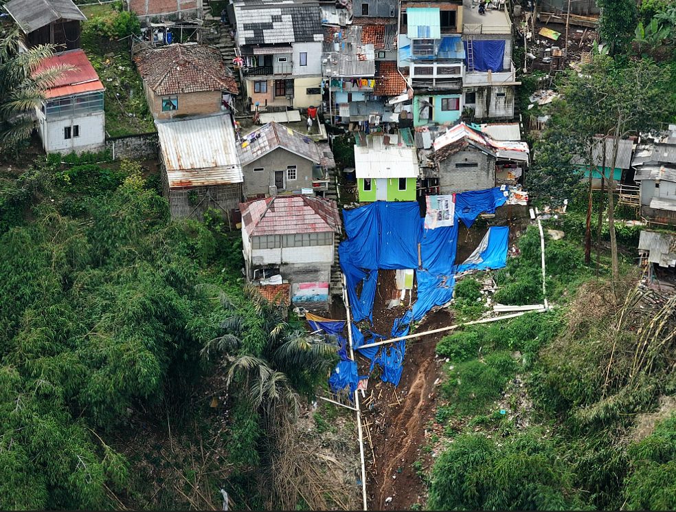 Rumah yang berdesakan, hingga ke tepi jurang.