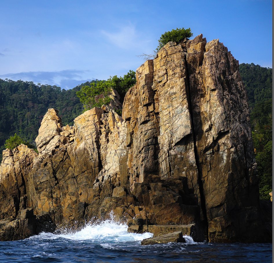 Dinding terjal batu granit dan granodiorit yang terkekarkan, berdiri kokoh, di teluk Pegadungan, Tanggamus, Lampung. Batuan beku hasil intrusi tersebut menjadi benteng alami saat gelombang tsunami 1883 melanda Lampung Selatan. Pada landaan tsunami 22 Desember 2018, pulau-pulau batu tersebut mampu meredam gelombang tinggi, sehingga gelombangnya menjadi terpecah dan lemah. Dilaporkan bahwa pada saat tsunami 2018,…